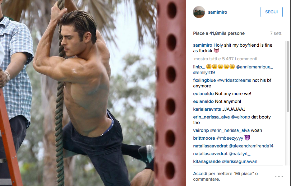 Efron, poi, in questo periodo è molto impegnato e sta facendo di tutto per mettere su muscoli per essere all’altezza del ramake di Baywatch che uscirà nel 2017 e che lo vedrà tra i protagonisti nel ruolo di Matt Brody.