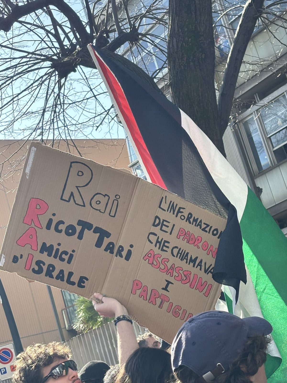 Una manifestazione pacifica, così la descrivono i presenti, quella che era stata organizzata nella giornata di oggi sotto gli studi Rai di Napoli per manifestare contro le censure al servizio pubblico e lanciare un messaggio Pro Palestina.
