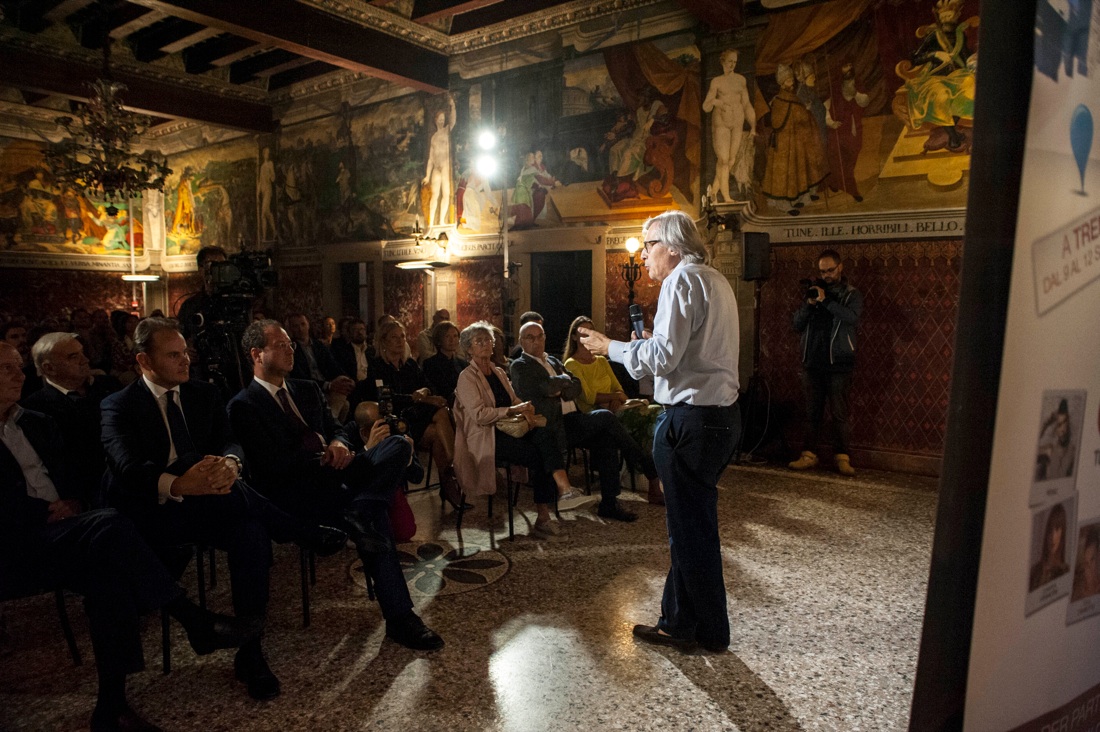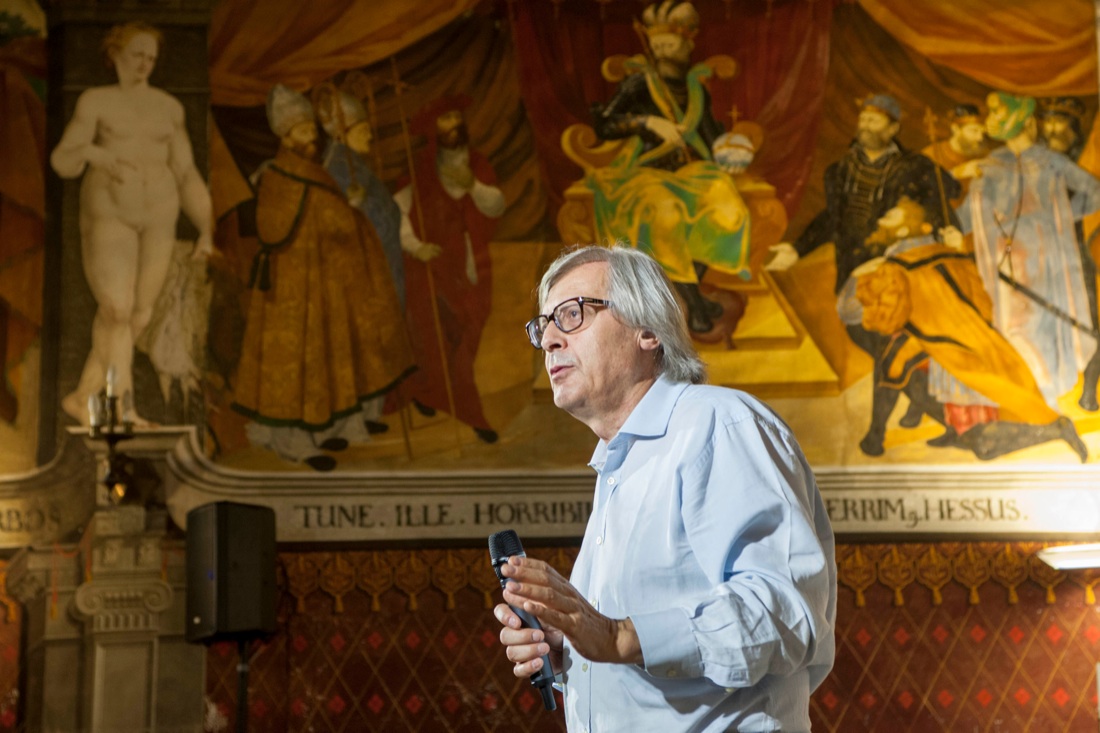 Trento, 9 settembre 2015, un momento della lectio magistralis di Vittorio Sgarbi a Villa Margon