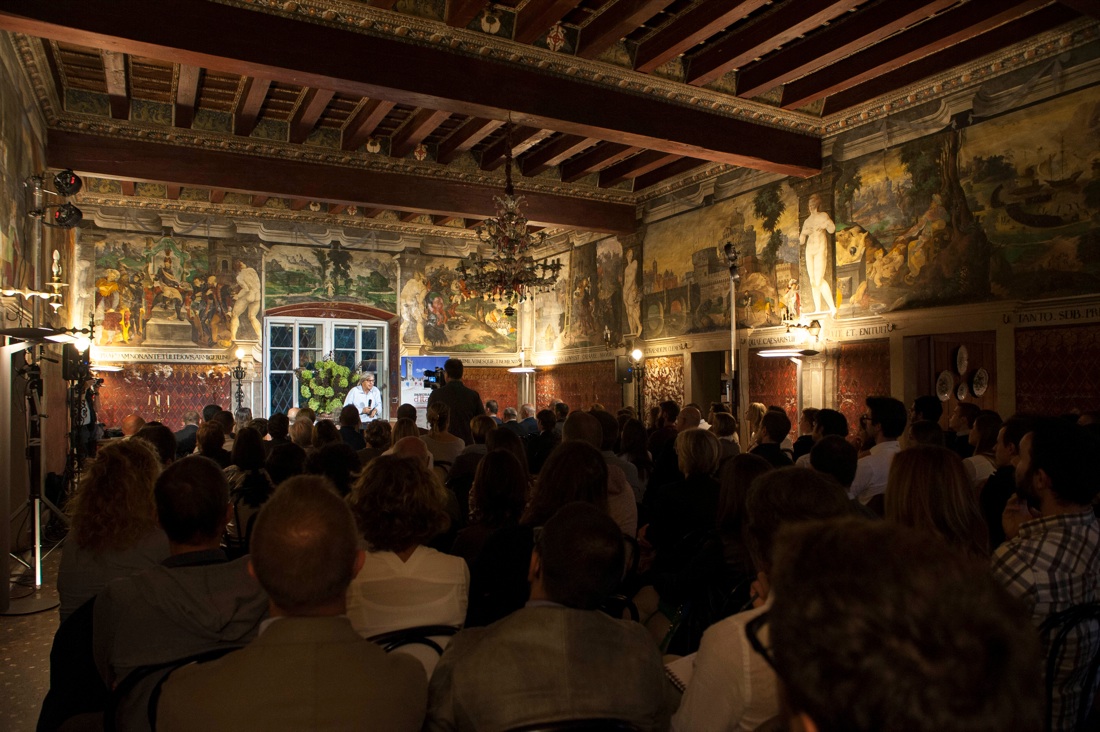 La villa è come un’estensione del mondo delle ville venete palladiane, ma qui siamo prima di Palladio. “C’è l’idea della villa, come luogo di ritiro che però corrisponde a una tenuta agricola” dice Sgarbi. Questo era un luogo di accoglienza per i vescovi e i cardinali del Concilio di Trento, ma anche per presidiare la coltivazione del territorio. L’architetto anonimo di Villa Margone anticipa le tendenze che poi svilupperà Palladio, mentre l’iconografia degli affreschi interni che si rifà a vicende della vita di Carlo V potrebbe essere stato realizzato da un pittore tedesco.“Qui c’è la conservazione della funzione per cui era nata la villa, la meditazione, l’ozio, la delizia, ma anche la coltivazione delle vigne” ha concluso il critico, “che ha saputo accrescere la bellezza di questo luogo”.
