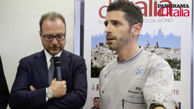 Lo chef ragusano delizia i palati dei presenti con un particolare antipasto di pesce nello splendido scenario del Convento dei Cappuccini di Ragusa Ibla