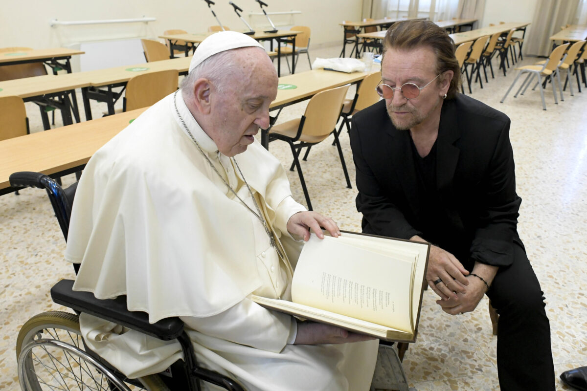 Il frontman degli U2 ha incontrato Papa Francesco nel 2022 per promuovere il Movimento Scholas Occurrentes, mirato a sostenere l’educazione e la cultura tra i giovani.