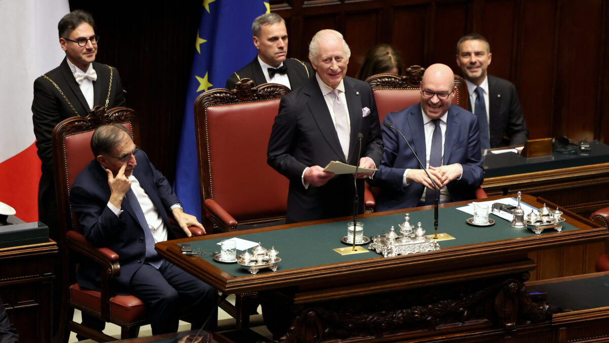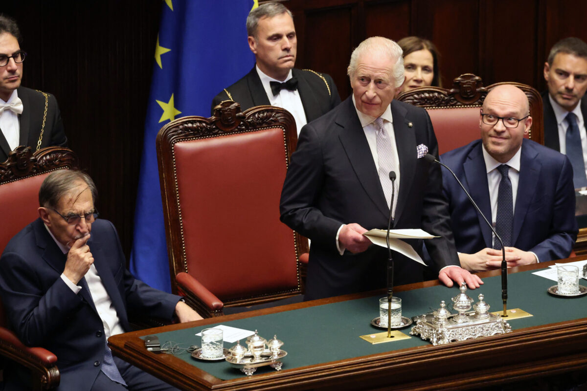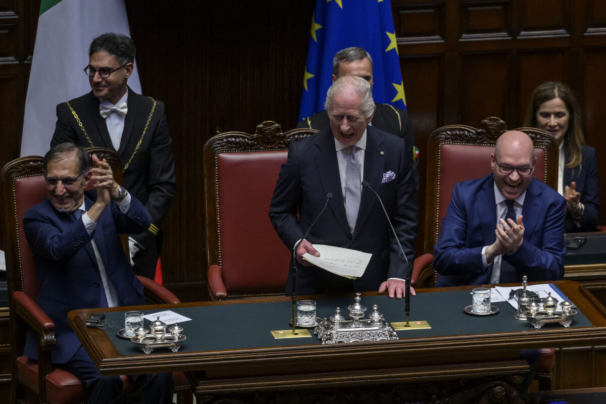 Dall’ex Mattatoio, re Carlo si è poi spostato a Montecitorio, dove è stato accolto dal presidente della Camera Lorenzo Fontana e dal presidente del Senato Ignazio La Russa. Davanti alle Camere riunite, il sovrano ha tenuto un discorso storico: è il primo monarca britannico a parlare al Parlamento italiano, e solo il quarto leader straniero dopo Papa Giovanni Paolo II e i re di Spagna Juan Carlos e Felipe VI.