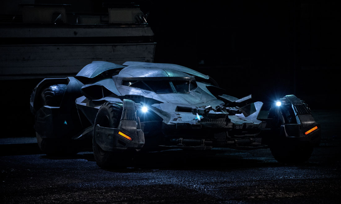 La Batmobile riflette lo stile di combattimento brutale del suo eroe ed è una bestia da oltre 4 tonnellate. Ha richiesto oltre un anno di lavoro per la sua costruzione, per i test e per le modifiche necessarie prima che fosse pronta per i primi piani in macchina da presa. È militaristica e ha un aspetto logoro, ma era un po’ troppo costosa per distruggerla contro un muro o farla ribaltare, quindi per le riprese più impegnative il team ha costruito due auto simili. Per le scene in cui era usata la vera Batmobile, al volante c’era lo stunt driver Mike Justus. “Tutto quello che mi era consentito fare era accostare e fermarmi”, ha detto ridendo Ben Affleck.