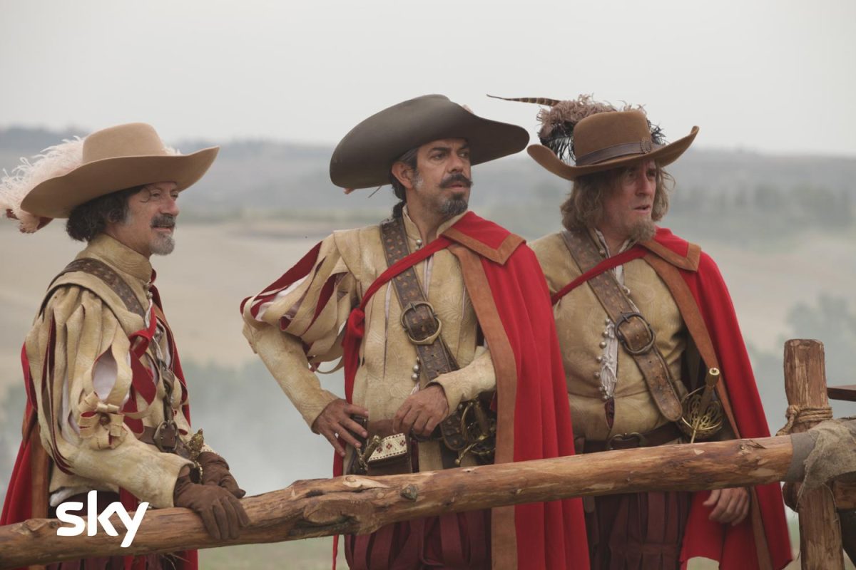 Il D’Artagnan dall’accento improbabile, il più sciroccato del grande schermo, dirotta su Sky, insieme alla sua banda di moschettieri «cialtroni», come li ha definiti la regina Margherita Buy. Tutti per 1 – 1 per tutti, sequel della commedia del 2018 Moschettieri del re – La penultima missione, sempre diretto da Giovanni Veronesi, debutta la sera di Natale, il 25 dicembre alle 21.15 in prima assoluta su Sky. È disponibile anche on demand e in streaming su Now Tv.