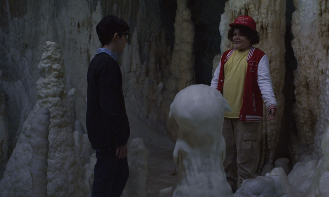 Tre ragazzini costringono un loro compagno di classe a una prova di coraggio per entrare a far parte del loro gruppo, ma inaspettatamente il bambino viene inghiottito da una voragine che si apre sul pavimento. I tre rimasti fuori non sanno cosa fare e stanno pensando alla fuga, ma la coraggiosa sorellina di uno di loro li ha seguiti e si cala nella voragine, trascinando con sé anche gli altri bambini. Il quintetto riunito si trova nel ventre delle montagna, senza via d’uscita. Sarà Grotto, una buffa creatura simile a una stalagmite, ad aiutarli.