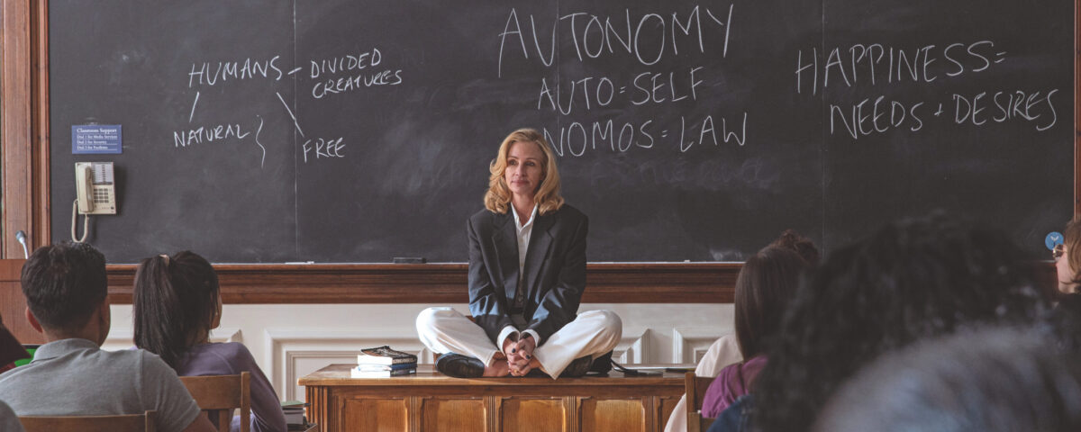 Non a caso il regista Luca Guadagnino inizia il film citando lo stile dei titoli di testa di Woody Allen, che agli occhi dell’opinione pubblica soprattutto americana è colpevole di aver molestato la figliastra Dylan, pur in mancanza di prove inconfutabili. Nel film che proietta l’ombra del dubbio sulla verità di tutti i personaggi, oltre che sulla bussola morale che guida le loro azioni, Julia Roberts è Alma Imhoff, rispettata professoressa di filosofia a Yale sposata con Frederik (Michael Stuhlbarg), psicanalista che lei tratta con superiorità e mette in disparte per dedicarsi a discussioni brillanti col più giovane collega e amico Hank Gibson (Andrew Garfield), che come lei aspira a ottenere la cattedra, e con Maggie (Ayo Edebiri), studentessa che sta preparando proprio con lei la propria tesi.