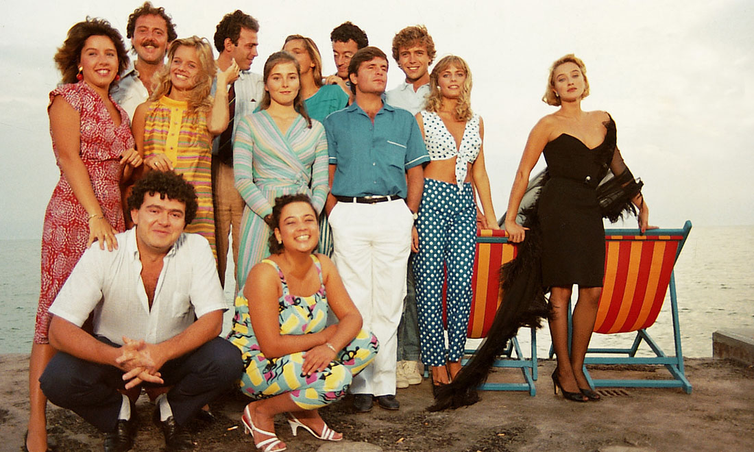 Il cast di “Sapore di mare 2 – Un anno dopo”. In piedi, da sinistra_ Anna Pettinelli, Enio Drovandi, Karina Huff, Angelo Cannavacciolo, Pascale Reynaud, Giorgia Fiorio (dietro), Mauro Di Francesco, Paolo Baroni (dietro), Massimo Ciavarro, Isabella Ferrari e Eleonora Giorgi. Seduti, Giorgio Vignali e Francesca Ventura