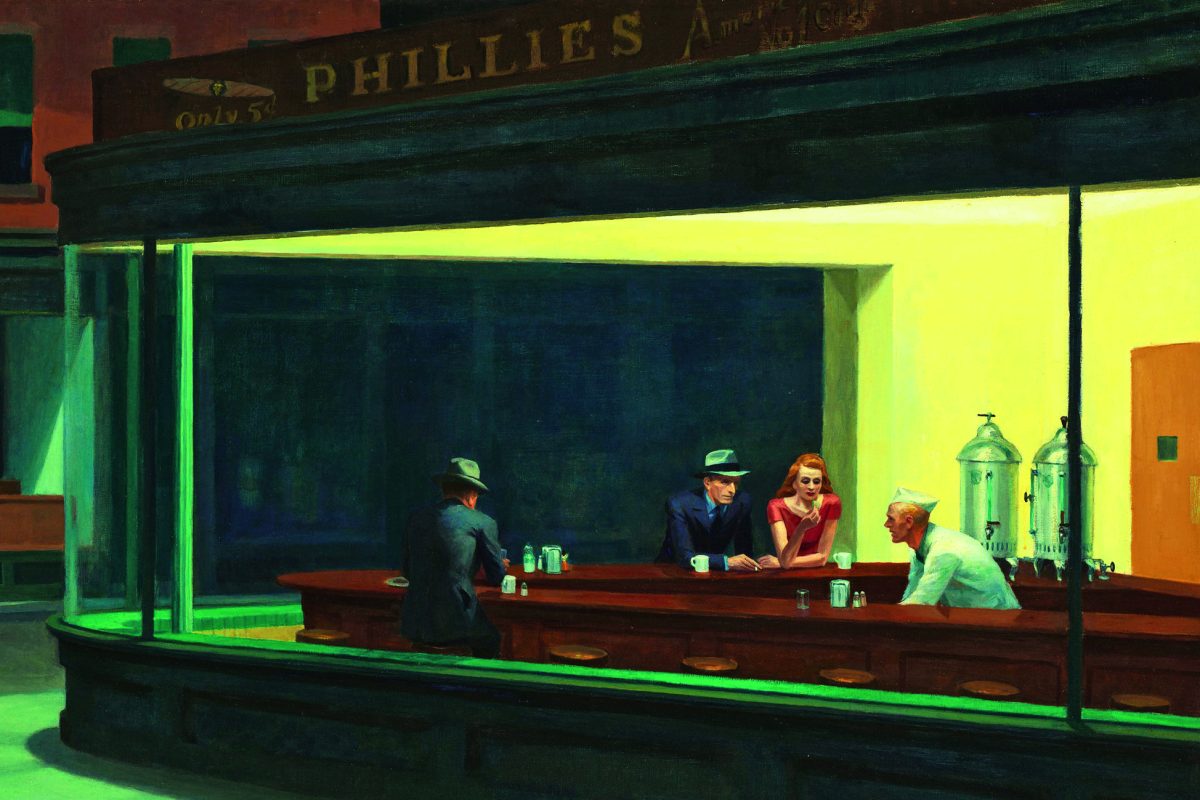 C’è qualcosa di affascinante e respingente al tempo stesso ne I nottambuli, il quadro più celebre di Edward Hopper (1882-1967), considerato tra i più influenti pittori americani di sempre: due uomini e una donna siedono in un diner, a notte fonda, e non sembrano particolarmente inclini a fare conversazione, mentre il barista è intento a preparare qualcosa. Lei mangia un sandwich e i due uomini sembrano assorti nei propri pensieri: uno visibile, di bell’aspetto, l’altro di spalle, non è riconoscibile, e potrebbe anche essere un malavitoso. D’altra parte che ci fanno lì mentre tutta la città dorme, illuminati solo dai neon del locale? Un bar peraltro piuttosto strano, perché non ha apparenti punti di entrata o di uscita, e i quattro sembrano quasi in trappola, perché non ci sono porte per entrare o uscire dal locale. La grande vetrina sembra non avere vetri e anche se gli sgabelli vuoti invitano chi guarda ad avvicinarsi e sedersi, siamo poi sicuri che sia proprio una buona idea? Questo senso di mistero, che spinge lo spettatore a interrogarsi su cosa sia accaduto prima e cosa accadrà dopo in questo che pare un fotogramma cinematografico, è al centro dell’indagine di Hopper, una storia d’amore americana, documentario di Phil Grabsky che sarà al cinema il 9 e 10 aprile: un film che vuole analizzare i dipinti che hanno descritto l’America, lasciando ammaliate e interdette generazioni di spettatori, attraverso la lente della biografia, fin da quando il giovane Edward si trasferì a Parigi all’inizio del Novecento in un convitto religioso sotto il controllo degli amici della madre, e anziché frequentare il Moulin Rouge con gli altri artisti bohémien, se ne andava in giro a dipingere scorci di strade, ispirandosi agli impressionisti e avviandosi, nell’attesa di diventare pittore, verso un lavoro che detestava, ovvero quello di illustratore.
