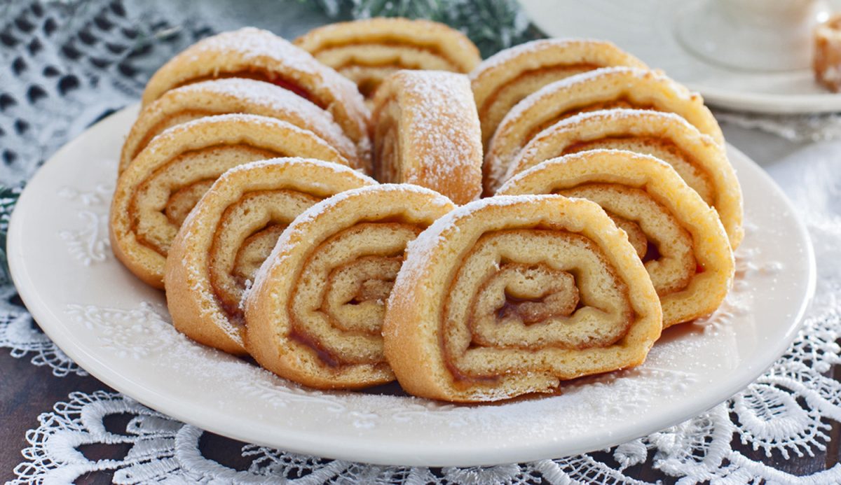 BISCOTTO ARROTOLATO CON PANNA E PESCHE