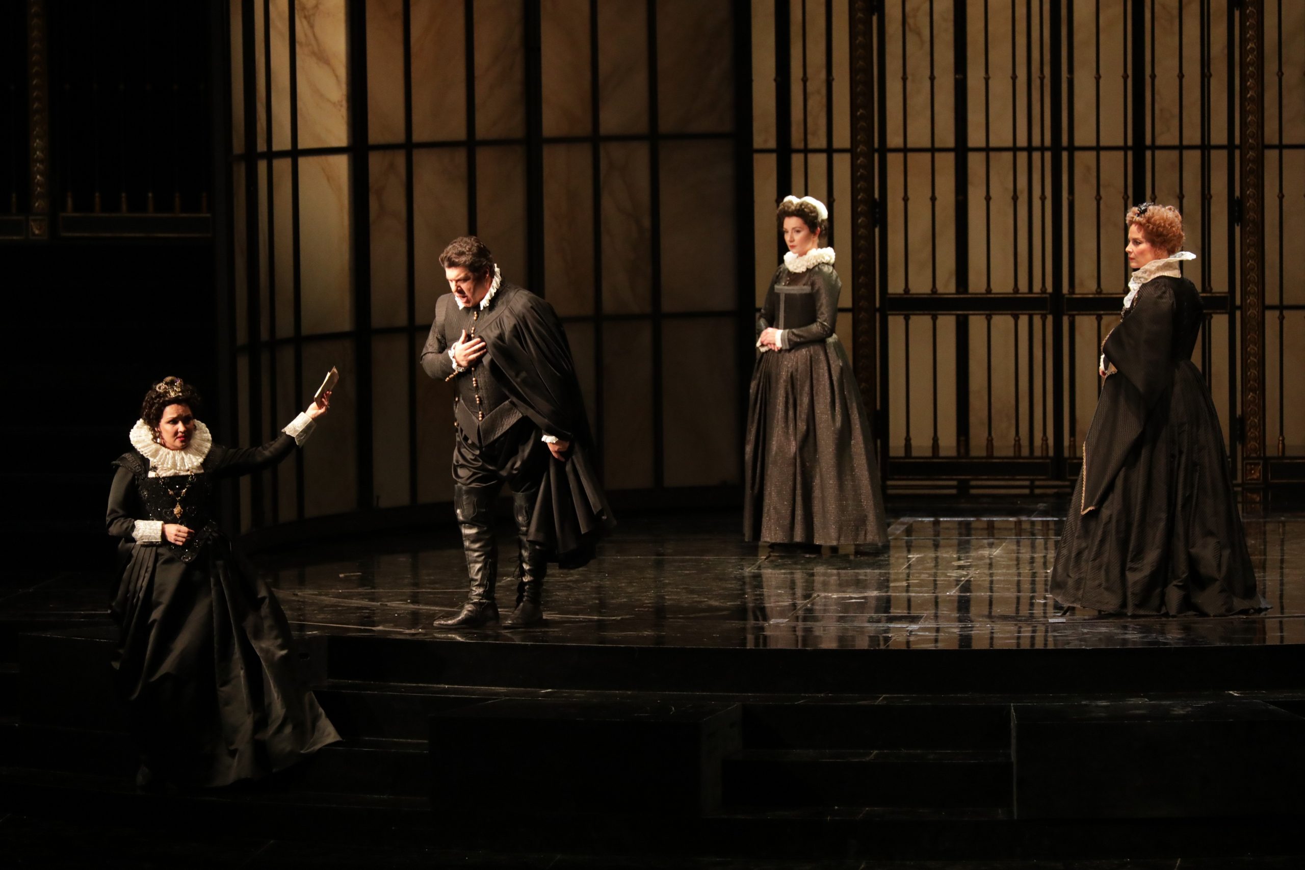 Lo spettacolo di Luca Ronconi e dello scenografo Luciano Damiani prevede una scena divisa in due: l’azione si svolge davanti, con pochi elementi per evocare la cappella sepolcrale di Carlo V, mentre sullo sfondo sfila ininterrottamente un’inquietante processione, che Alberto Arbasino definisce malignamente un «carnevale di Viareggio di madornali carri allegorici con emblemi di potere catto-spagnolesco». Anche l’epoca Muti ha avuto il suo Don Carlo, con ritorno ai quattro atti, il caos bombastico di Franco Zeffirelli e un Luciano Pavarotti, come scrissero alcuni, «terrorizzato», che dopo questa prova non tornerà più alla Scala. Nel 2008 tocca a Daniele Gatti: di nuovo tribolazioni, con protagonista sostituito tra anteprima e Prima (fuori Giuseppe Filianoti, dentro Stuart Neill), e spettacolo concettuale di Stéphane Braunschweig che non piace. Ma ancora meno piace lo spettacolo in cinque atti di Peter Stein, importato da Salisburgo dal Sovrintendente Alexander Pereira. Ma piace la direzione di Myung-Whun Chung, come il tenore Francesco Meli che, sempre nella parte dell’Infante di Spagna, giunge oggi al suo quinto 7 dicembre.