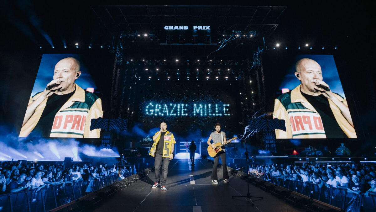 Non è un semplice concerto quello di Max Pezzali. Gli 85 mila che hanno preso d’assalto l’autodromo di Imola sono stati gli attori di un grande party nazional popolare, la celebrazione collettiva di un artista che più di ogni altro è capace di parlare il linguaggio della gente.