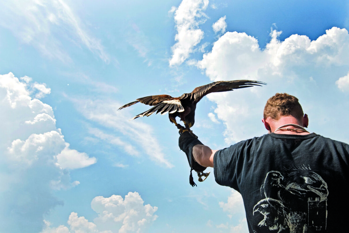 «In Italia il massimo esponente di questa nobile pratica è stato l’imperatore Federico II di Svevia, che nel XIII secolo scrisse il trattato De arte venandi cum avibus, considerato un capolavoro della letteratura sulla falconeria», spiega Fabrizio Piazza, presidente dell’Associazione nazionale Circolo falconeria maestra che raggruppa oltre 100 falconieri italiani selezionati e partecipa a manifestazioni in tutto il mondo. «Con il tempo questa pratica secolare ha smesso di essere solo una prerogativa di nobili e aristocratici, ma è diventata un’arte destinata a tutti gli amanti e gli appassionati dei rapaci. Il principale focus dell’addestramento in falconeria resta comunque, oggi come allora, l’incredibile rapporto tra uomo e rapace, basato su profondi sentimenti di fiducia e rispetto, con un’unica finalizzazione: la caccia. Tutti gli altri appassionati che si avvicinano ai rapaci dovrebbero essere battezzati come falcofili. Si tratta di una distinzione fondamentale, per capire appieno di cosa si sta parlando».