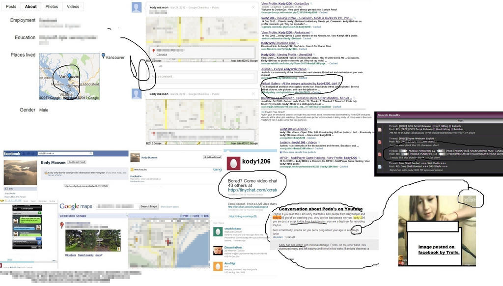 Gli hacker avevano pubblicato un lungo video su YouTube (ora rimosso), mandato in prima battuta alla filiale canadese di CTV News, un mosaico che mostrava immagini di Google Maps e testi con le informazioni personali del presunto molestatore di Amanda, con screenshot degli account utilizzati su altri portali e forum (parzialmente visibili a questo link ). Google ha prontamente cancellato il filmato, perché violava la privacy dell’uomo, e Anonymous si è dovuto accontentare di pubblicarne un altro dove spiega semplicemente l’obiettivo di #OpRIP : “Di solito non ci piace dare una mano alla polizia ma siamo stati costretti a mettere le nostre abilità a favore della protezione dei bambini” – scrivono sotto il video – “ironia della sorte abbiamo qualche buona persona in Vancouver che ha portato questa cosa all’attenzione dei nostri coordinatori. È una storia davvero triste che ci riguarda tutti“.