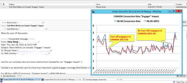 Ma quanto guadagnava Ashley Madison con i bot informatici? Un bel po’ stando ad un grafico rilasciato su Twitter da @amlolzz. In una conversazione via email del 26 Aprile 2012 tra il COO di Avid Life Media Rizwan Jiwan e l’ex amministratore delegato Noel Biderman, si leggono gli ottimi tassi di conversione sul numero di utenti semplici che diventavano paganti. Le casse della società, dopo aver incassato ottime cifre grazie all’introduzione degli engagers, cominciarono a piangere all’inizio del 2011, a seguito dello spegnimento dei bot. Alla loro riaccensione 14 mesi più tardi, i ricavi tornarono alle stelle, passando da circa 60.000 dollari al mese ad oltre 110.500.