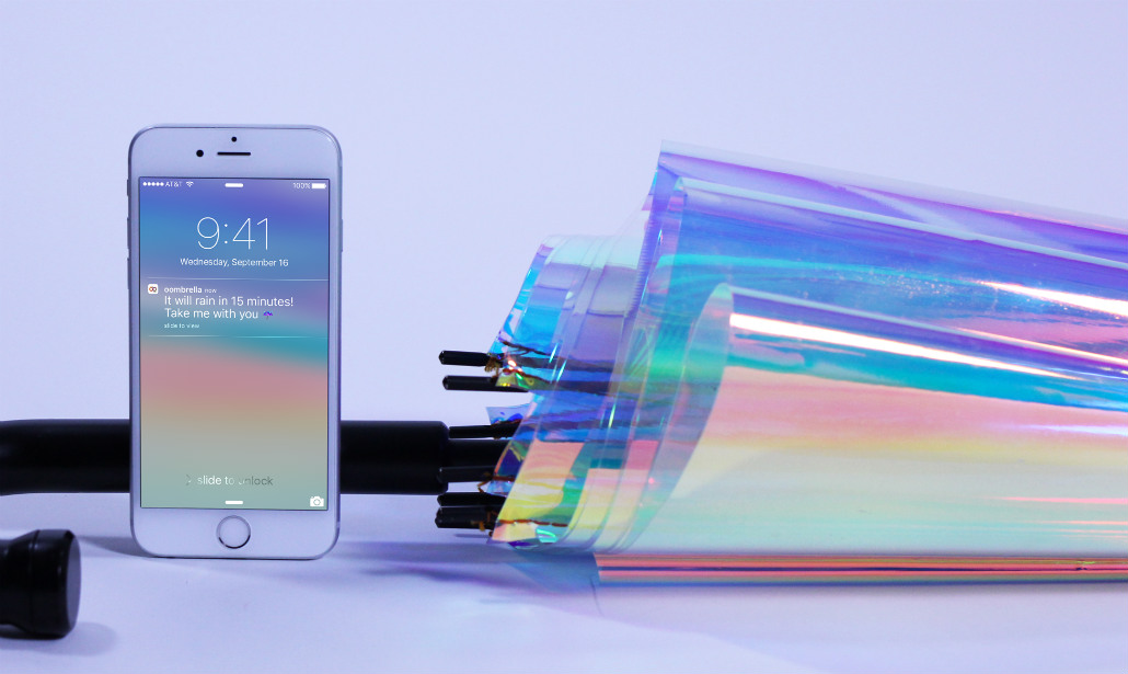 Nulla di nuovo o clamoroso, è vero. Infatti quelli che si attendono sono miglioramenti e versioni definitive o più mature di prototipi già visti. Con le solite divagazioni non così fondamentali eppure presenti, dallo spazzolino (Grush) alla macchina per il caffè (Arist) che interagiscono con lo smartphone, fino all’ombrello (Oombrella, il nome è quel che è, la foto qui sopra), che manda una notifica quando sta per piovere o lo si sta dimenticando da qualche parte. All’occorrenza, provvidenziale.