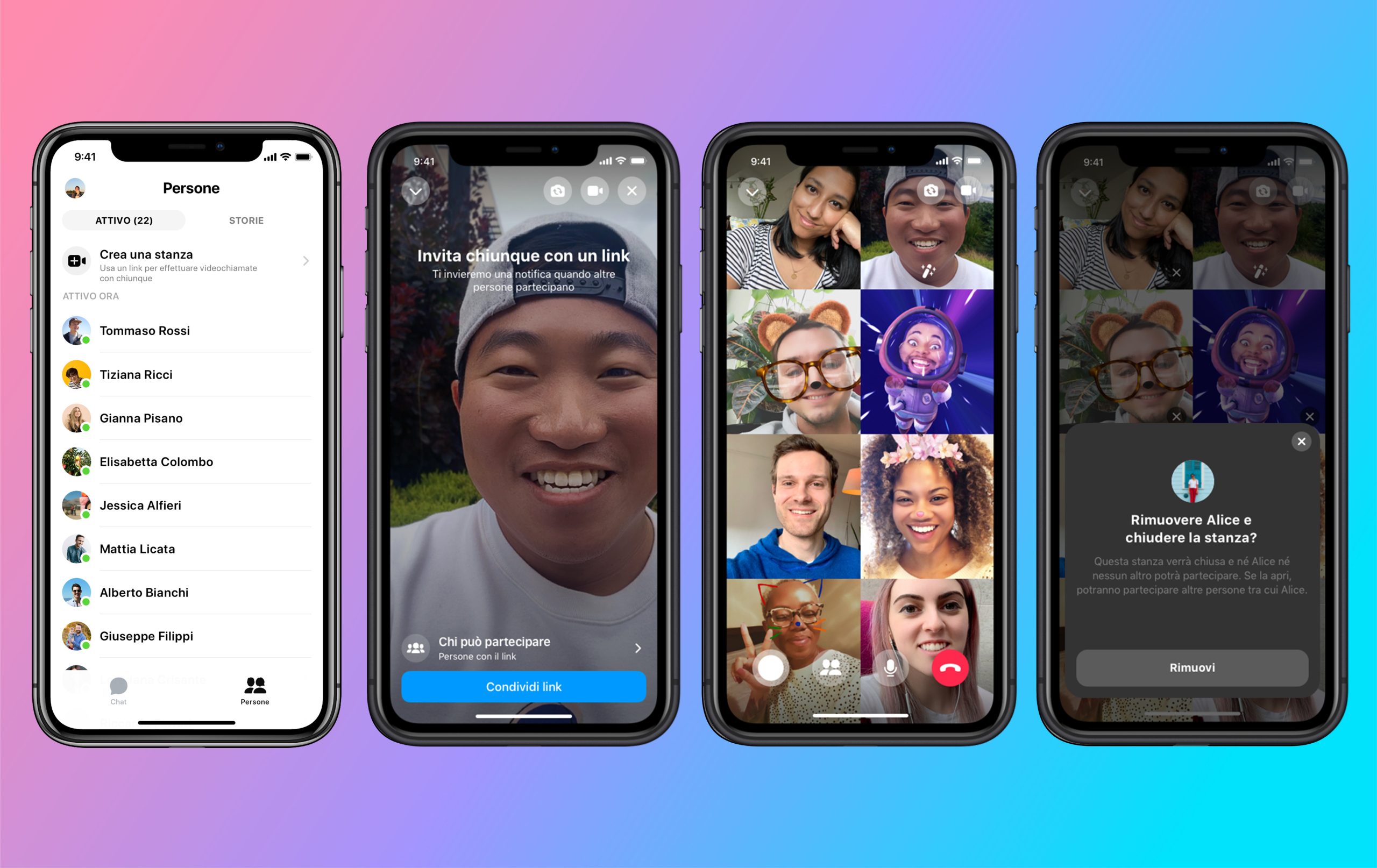 Già disponibile in Italia, che è uno dei primi paesi a testare il servizio che arriverà nelle prossime settimane nel resto del mondo, Messenger Rooms arriverà presto anche su Instagram Direct, WhatsApp e Portal, seguendo il piano di integrazione di tutte le piattaforme dell’ecosistema ventilato a più riprese da Mark Zuckerberg. Non a caso nell’ultimo periodo si sono susseguite diverse novità su WhatsApp, Instagram e Facebook. Gli ultimi due hanno aggiunto nuove funzionalità per i video live, in particolare con il ritorno del “Live With” sulla piazza virtuale da oltre 2 miliardi di utenti mensili attivi, che permette di aggiungere un’altra persona alla propria diretta rivelandosi una carta preziosa per fare delle interviste o confrontarsi con un amico. Sempre su Facebook, inoltre, si può aggiungere il tasto “dona” nei live per agevolare le raccolte fondi. Quanto a WhatsApp, invece, le videochiamate si allargano e possono includere ora fino a un massimo di 8 persone, con il consueto sistema di crittografia end-to-end a mantenere al sicuro da occhi e orecchie indiscrete le proprie conversazioni