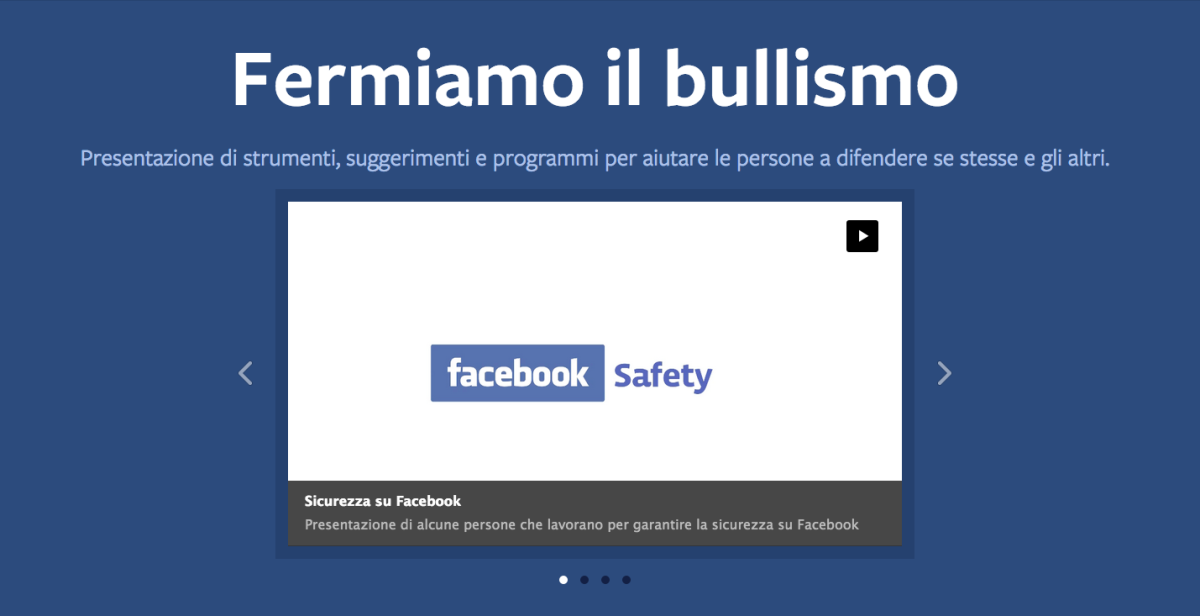 Che tu sia stato vittima di bullismo, sia amico di qualcuno che ne è stato vittima o ne sia stato accusato, ricorda che puoi sempre trovare aiuto. Scopri gli strumenti offerti da Facebook per aiutarti a gestire il problema.”