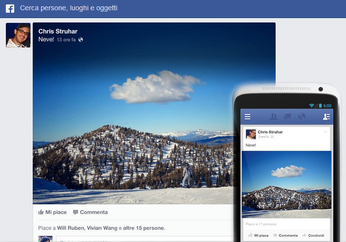 “Un aggiornamento che rimette al centro l’utente”, ha voluto sottolineare il direttore del design della società, Julie Zhuo. Ma soprattutto che punta ad uniformare l’esperienza dei tre mondi nei quali il social network vive attualmente: PC, tablet e smartphone. Significa che qualsiasi contenuto – testo, video, immagine o collegamento che sia – apparirà più o meno allo stesso modo indipendentemente dalla piattaforma sulla quale viene visualizzato.