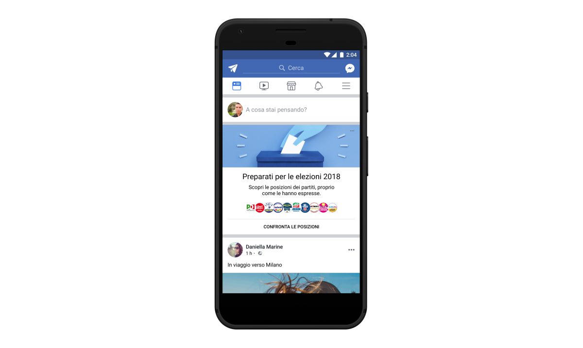 A meno di un mese dal voto, Facebook annuncia l’arrivo sulla piattaforma italiana di una nuova sezione dedicata al confronto dei programmi politici. L’iniziativa, che si traduce in una pagina denominata Punti di Vista – mostrata in cima al News Feed una volta ogni tre giorni – punta a fornire uno spaccato delle posizioni dei dieci principali partiti del nostro schieramento politico su alcuni temi di stretta attualità.
