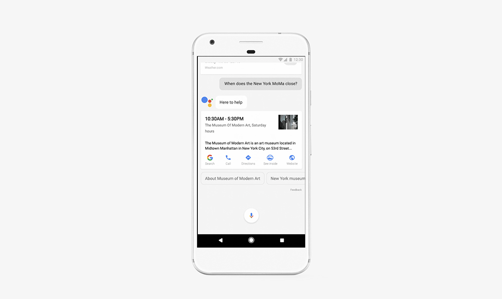 Google Assistant, spiegano i responsabili della società, conversa con noi, capisce il contesto e ci aiuta a fare ciò che ci serve. Semplifica l’acquisto dei biglietti per il cinema mentre siamo per strada, ad esempio, trova il ristorante ideale per uno spuntino al volo prima dello spettacolo e ci offre le indicazioni stradali per arrivare in sala in orario. Qualcosa di più di una semplice applicazione, un’estensione di Google stessa nella sua forma più intelligente e intraprendente.