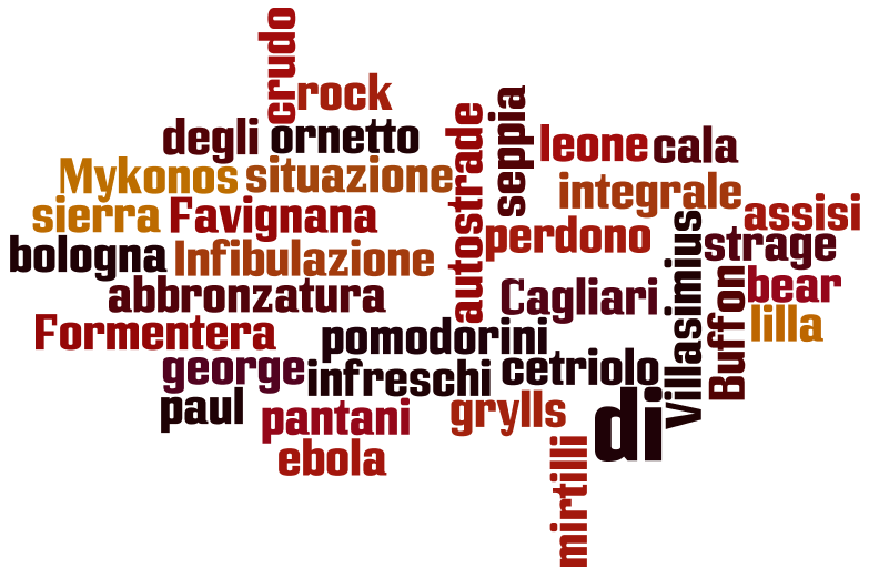 Attualità e cronaca come sempre dominano la classifica generale delle parole emergenti estive. La diffusione del morbo dell’ebola, l’anniversario della scomparsa di Pantani o della strage di Bologna, precedono per volumi termini vacanzieri come la Cala degli Infreschi, proclamata la spiaggia più bella d’Italia o la situazione autostradale. Estate però è anche sinonimo di cura della persona e così dalle calorie alle diete, gli utenti dimostrano con le proprie ricerche un’attenzione costante alla forma fisica anche in villeggiatura. Parlando invece di look da spiaggia, gli italiani hanno navigato molto alla ricerca dell’abbigliamento giusto del momento assegnando il primo posto tra le ricerche all’originale costume a sacchetto da uomo.