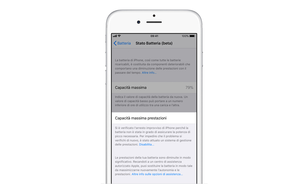 Per smorzare questi fenomeni di usura per così dire “fisiologica”, Apple ha introdotto il cosiddetto strozzamento delle prestazioni. Si tratta di una modalità di gestione automatica della performance che interviene automaticamente quando la batteria è usurata. Ciò per evitare il verificarsi di gravi anomalie, come ad esempio lo spegnimento immotivato della batteria.