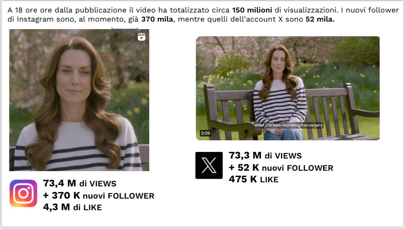 Su X, l’ex Twitter, a farla da padrone erano le teorie complottistiche e il gossip puro. Su Instagram, come ovvio, le immagini ritoccate della consorte del futuro re e i suoi figli campeggiavano come simbolo di una monarchia ormai al declino.