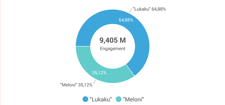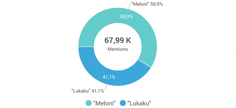 Da Nord a Sud, in modo particolare durante l’estate, ci sono davvero pochi argomenti che riescono a calamitare l’attenzione degli italiani preoccupati per lo più di lenire l’afa metropolitana e di scegliere la miglior destinazione per le vacanze. Tra questi, nei primissimi posti c’è il calciomercato, una speciale soap opera che merita di essere sceneggiata per la originalità dei protagonisti, che le squadre del campionato di Serie A mettono in scena per la gioia e il dolore dei tifosi. Due mesi unici segnati da trattive serie e inventate, da incastri impossibili, da partenze rimandate all’ultimo secondo e di arrivi sui quali nessuno avrebbe puntato un solo euro. E, ogni volta, stagione dopo stagione, il calciomercato vero ruota tutto su un singolo colpo e un singolo campione. Quest’anno è il momento dell’attaccante belga Romelu Lukaku, di proprietà del Chelsea ma dato in prestito all’Inter dove ha appena concluso la sua stagione, anche a giudicare dal parlato digitale che ha raccolto la keyword nominativa. In soli sette giorni, dal 14 al 21 luglio, il cognome ha incassato circa 28 mila menzioni, con una media di 3,5 mila menzioni al giorno. Un numero elevatissimo la cui portata può essere compresa appieno solo se la confrontata con quella ottenuta nello stesso periodo da un magnete digitale: Giorgia Meloni.