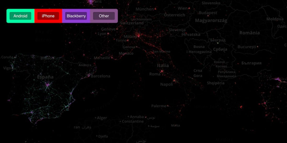 Oltre 280 milioni di tweet postati dai cellulari in tutto il mondo rivelano l’utilizzo geografico della piattaforma e i tipi di smartphone più usati in determinate parti del globo. La mappa interattiva è qui.