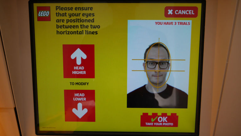 Tutto avviene come in un normale chiosco fotografico. Si entra, si aggiusta il seggiolino all’altezza desiderata e si aspetta il fatidico clic della macchina fotografica. Da quel momento, però, cambia tutto: Mosaic Maker stampa dapprima una foto del ritratto fatta tutta di LEGO, quindi sforna in tempo pressoché reale (circa 10 minuti) una scatola contenente i pezzi necessari per realizzare concretamente il mosaico.