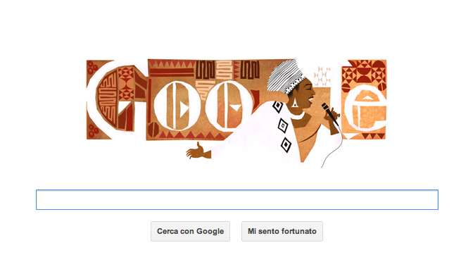 Google celebra con il doodle di oggi la cantante sudafricana Miriam Makeba , conosciuta in tutto il mondo come Mama Africa, nata il 4 marzo 1932.