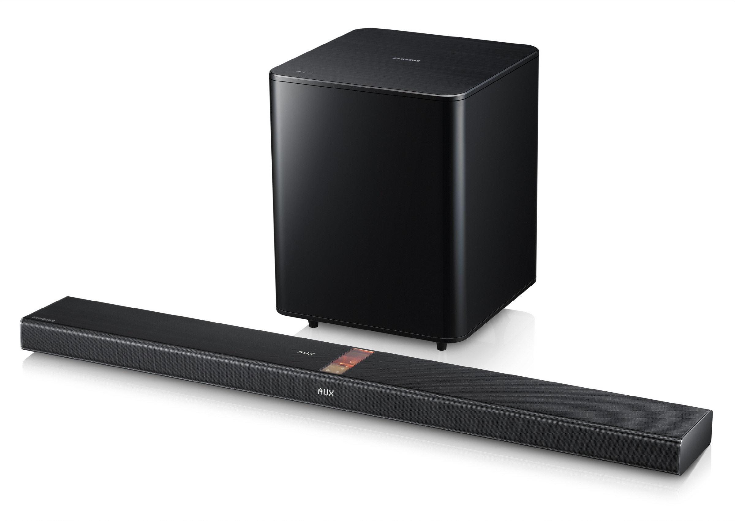 Realizzata traendo ispirazione dalla forma dei moderni grattacieli, la speaker bar di Samsung ha gli angoli arrotondati, sottolineati dal colore nero satinato ripreso anche dal subwoofer wirless abbinato. Costa 749 euro.