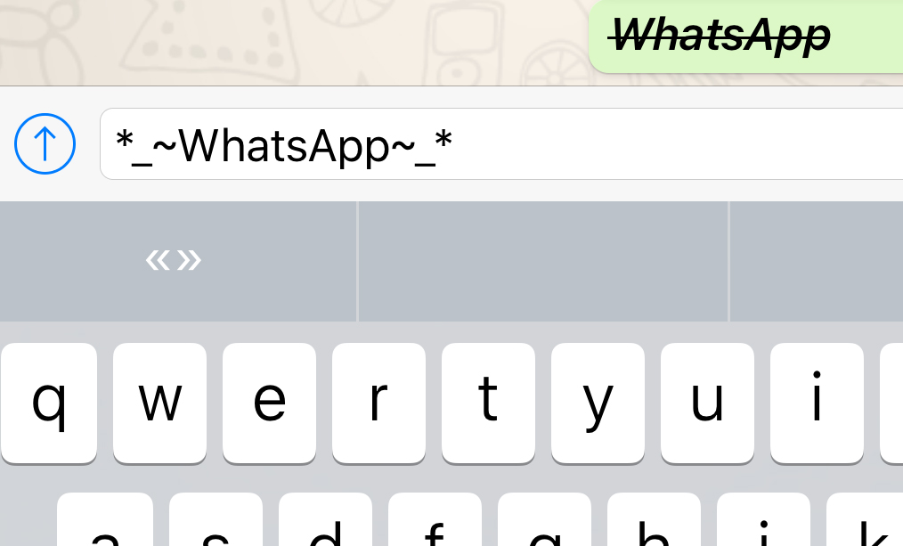 Per il grassetto barrato è necessario aggiungere un asterisco e una tilde (*~) prima e dopo la parola. Es: *~WhatsApp~*