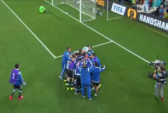 Ha fatto un buon risultato, ma non è stato un bilancio eclatante. La Gazzetta dello Sport ha intitolato “Che palle” per stigmatizzare lo scarso spettacolo offerto dalle squadre nei tempi regolamentari e questo non poteva non avere degli effetti, sia pure relativi, su gli ascolti. Su Rai 1 Argentina-Olanda ha ottenuto 9,230 milioni e 45,68%, nel primo tempo 9,875 milioni e il 39,64% di share e nel secondo 9,4 milioni e il 47,65%; nei tempi supplementari l’ascolto è stato di 8,2 milioni con il 53,38% di share e infine di 8,4 milioni e 59,18% nella fase dei rigori. La sera prima Brasile-Germania, finita 7 a 1 per i tedeschi e senza la coda dei tiri dal dischetto, aveva ottenuto 10,649 milioni e il 45,4%, sostanzialmente un milione in più di spettatori. Nel 2010 la seconda semifinale, Spagna-Germania, aveva riscosso ben 11,584 milioni di spettatori ed il 48,92%, ma era stata giocata un’ora prima.