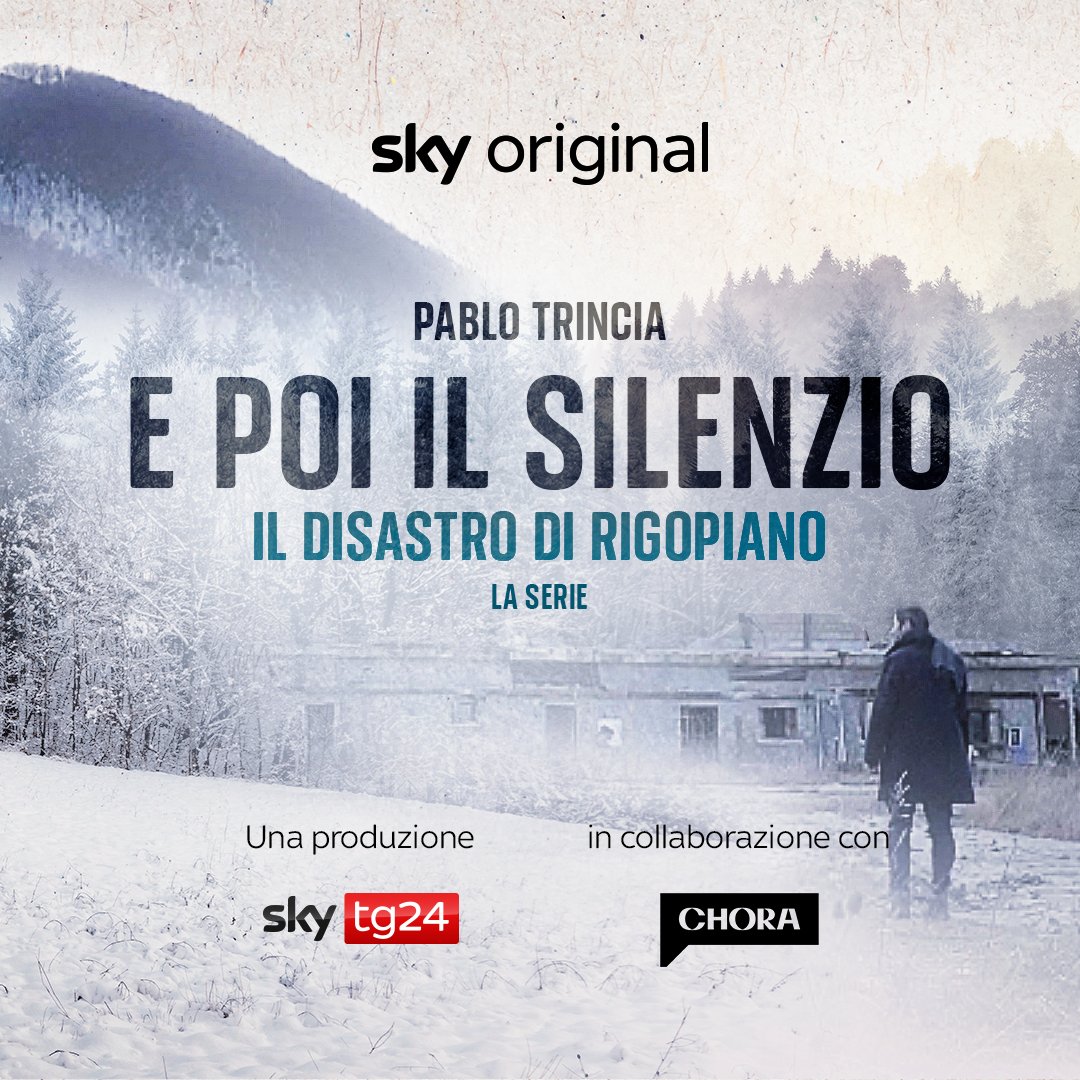 Dopo il grande successo ottenuto dal podcast, che ha raggiunto il primo posto nella classifica top podcast di Spotify, arriva su Sky la docuserie che ricostruisce nel dettaglio la tragedia dell’hotel Rigopiano: la valanga, i soccorsi, le testimonianze dei sopravvissuti e il ricordo delle vittime. La docuserie Sky Original, con la partecipazione di Chora Media, vede alla regia Paolo Negro, con la partecipazione di Pablo Trincia e Debora Campanella, già protagonisti dell’omonimo podcast.