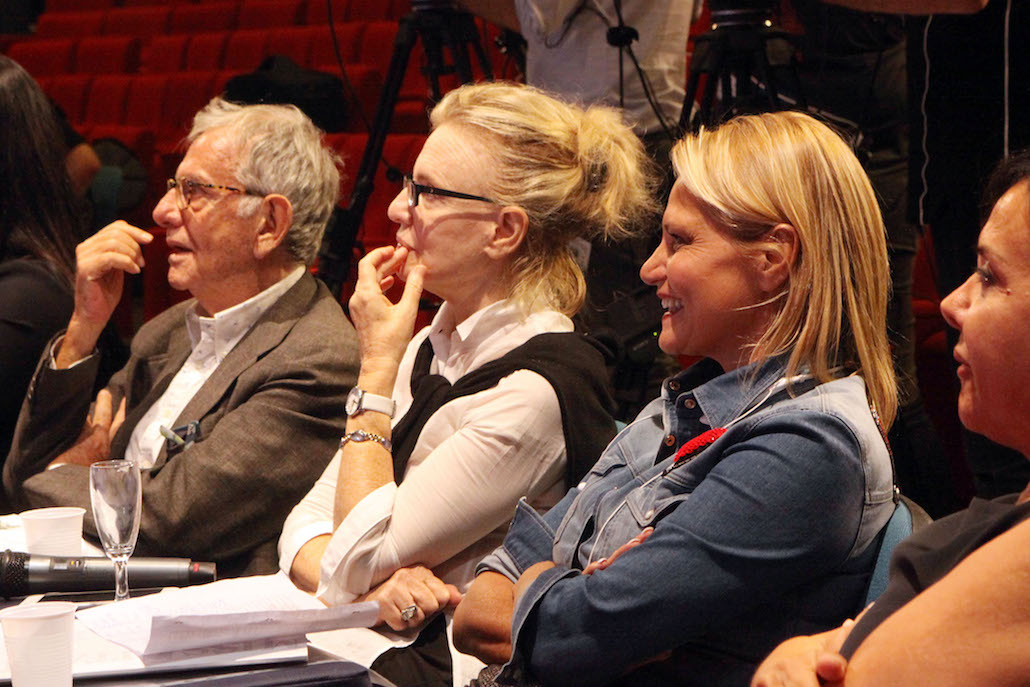 Le selezioni di Miss Italia 2015: la conduttrice Simona Ventura con Irene Ghergo ed Enrico Lucherini