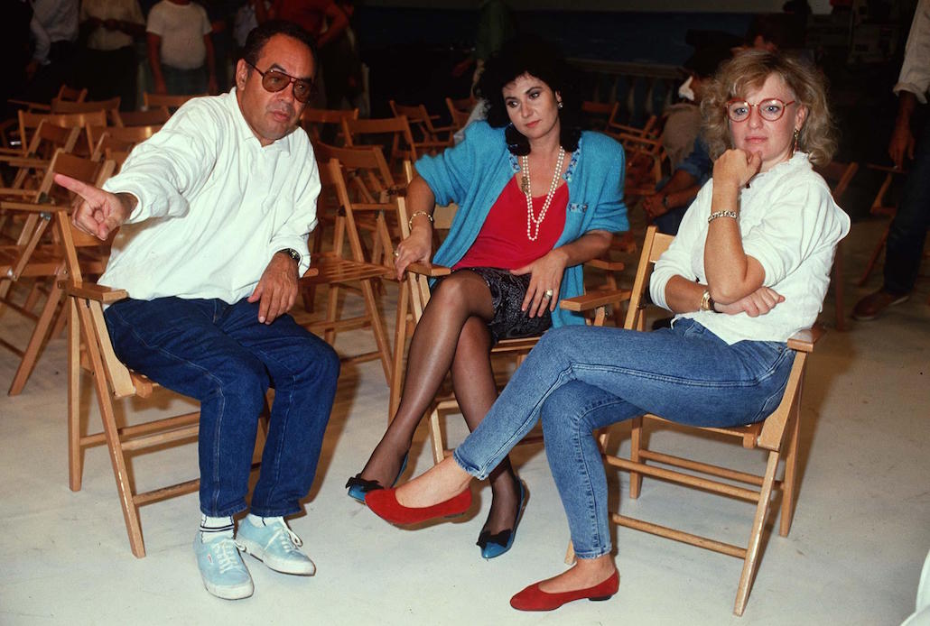Gianni Boncompagni, Marisa Laurito e Irene Ghergo durante le prove di una “Domenica In”