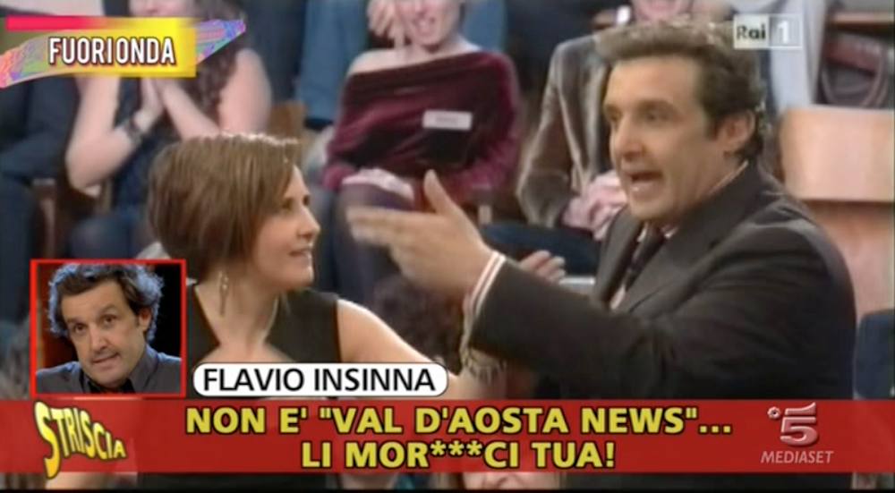 Insinna sapeva di essere un intoccabile in Rai. In studio infatti invitava, con l’arroganza di chi si sente protetto dall’alto, pubblico, maestranze, collaboratori a fare quello che volevano con la Rai: “Per me potete mandà i video, i telefonini, le cose, quello che ve pare. Per me potete mandare i messaggi a Leone, alla Rai, dicendo “è cattivo”, fate come vi pare. Siete solo dei sorci che parlate dietro”. Il conduttore dei pacchi dimostrava così di sapere benissimo che c’era chi registrava, chi si lamentava con viale Mazzini, chi era infastidito dalla sua violenza verbale. Ma sapeva che in Rai nessuno avrebbe alzato un dito contro di lui, come continua a succedere anche se non si è mai scusato ufficialmente con la concorrente che ha offeso.