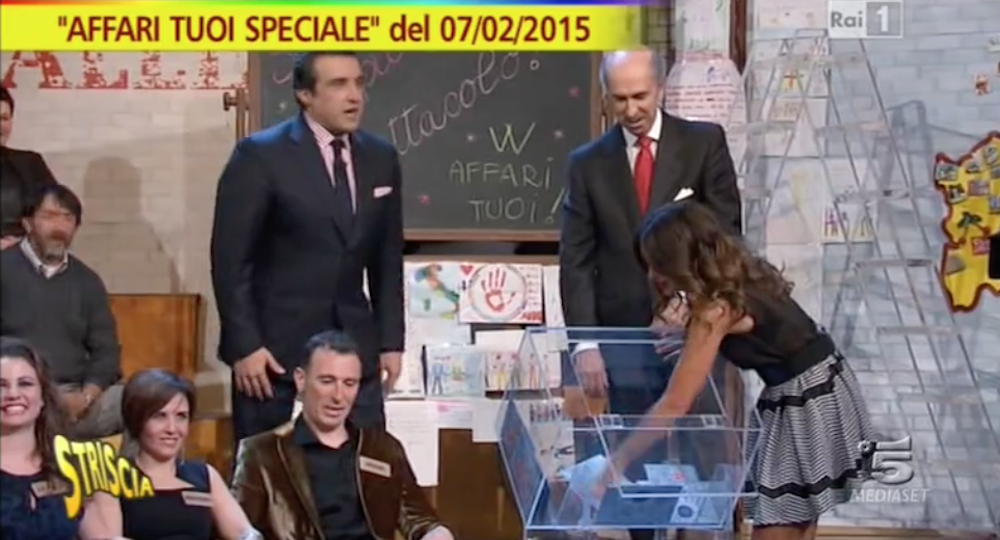 “Come è noto, la numerologia è sempre stata ad Affari Tuoi la chiave per il tarocco: per pilotare le puntate bisogna conoscere i numeri fortunati degli ignari concorrenti, che gli autori abilmente si fanno dire durante il provino. Il numero fortunato della signora della Valle D’Aosta è il 7. E quella sera, casualissimamente, proprio nel pacco sette ci sono 150.000 euro. A questo punto tutti sono fiduciosi che il pacco ricco rimarrà fino al termine della puntata, spettacolarizzando il finale e facendo crescere gli ascolti. Ma la signora rovina tutto accettando l’offerta di 45.000 euro della dottoressa. La puntata a questo punto è rovinata. Nel fuori onda, infatti, Insinna dice cosa avrebbero dovuto fare i responsabili del programma: interrompere la registrazione e convincere la concorrente valdostana (“nana di m…”) a rifiutare l’offerta della dottoressa, anche con la violenza (“La si porta di là, la si colpisce al basso ventre e dici: “Adesso tu rientri e giochi! Perché è Raiuno non è Valle D’Aosta News. Mor…cci tua!”). Insomma, si doveva costringere la concorrente a rientrare in gioco per salvare il finale acchiappa ascolti.