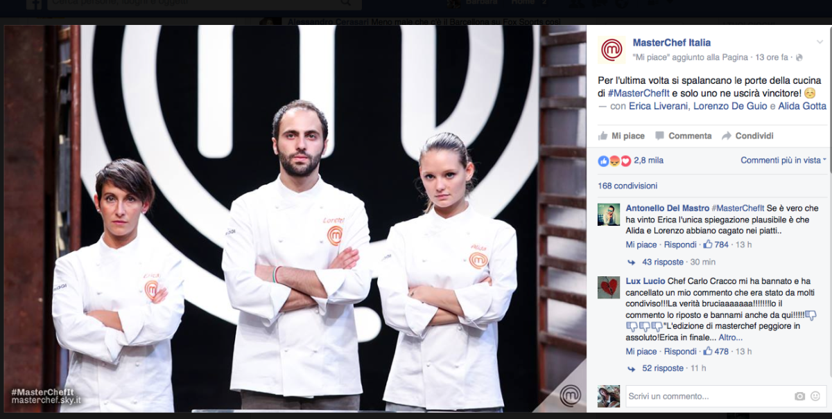 La rivincita della giovane mamma sedotta ed abbandonata è avvenuta. C’è chi parla di vittoria pilotata, chi della peggiore edizione di sempre, chi di antipatia dei concorrenti e di inadeguatezza al ruolo di MasterChef dei finalisti.