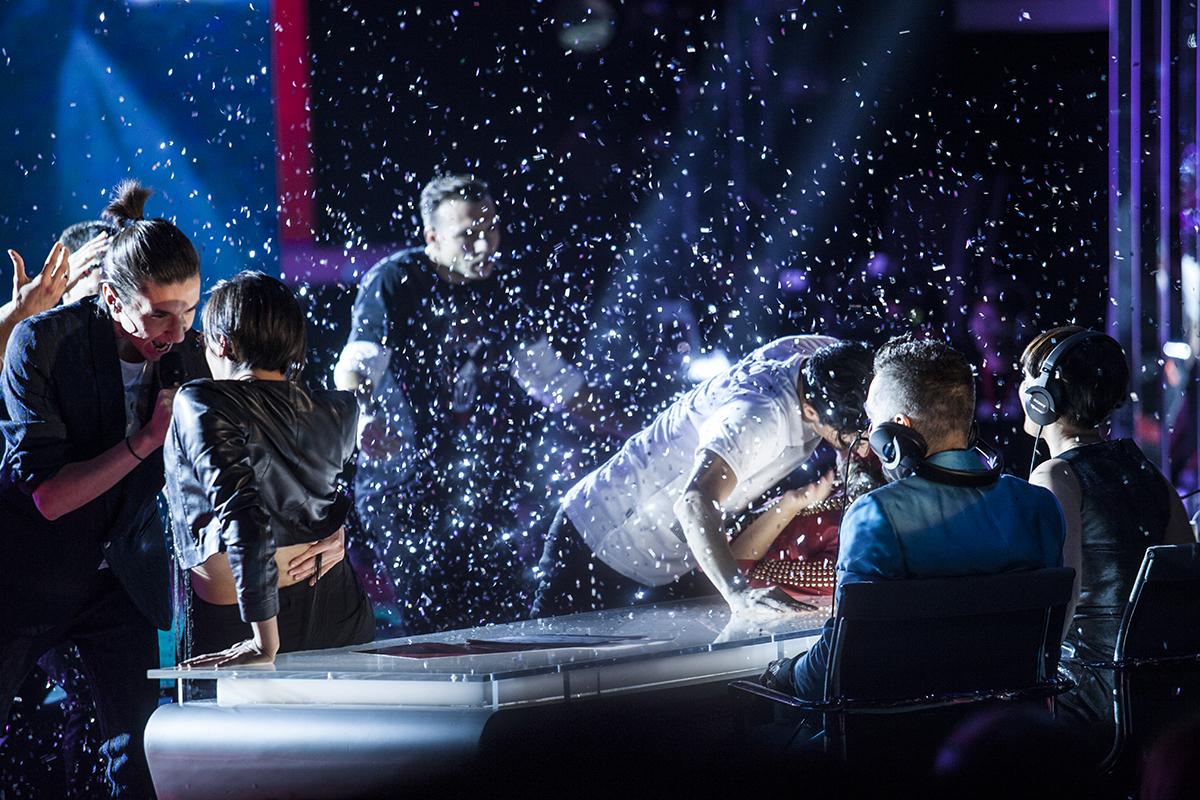 Sulle note di Weapon Of Choice di Fatboy Slim, Simona, Morgan (strepitoso nel suo nuovo look con capello a zero), Elio e Arisa raggiungono il tavolo della giuria ballando. Il ritmo tocca ad uno ad uno anche Tommassini, i vocal coach e l’ottimo Cattelan che annuncia la performance dance ideata dal pubblico, la Enel Choice Performance. Scenografia ed effetti speciali accompagnano quindi l’esibizione corale dei ragazzi nel famosissimo brano di Gloria Gaynor “I will survive” (alzi la mano chi non l’ha mai cantata al karaoke).