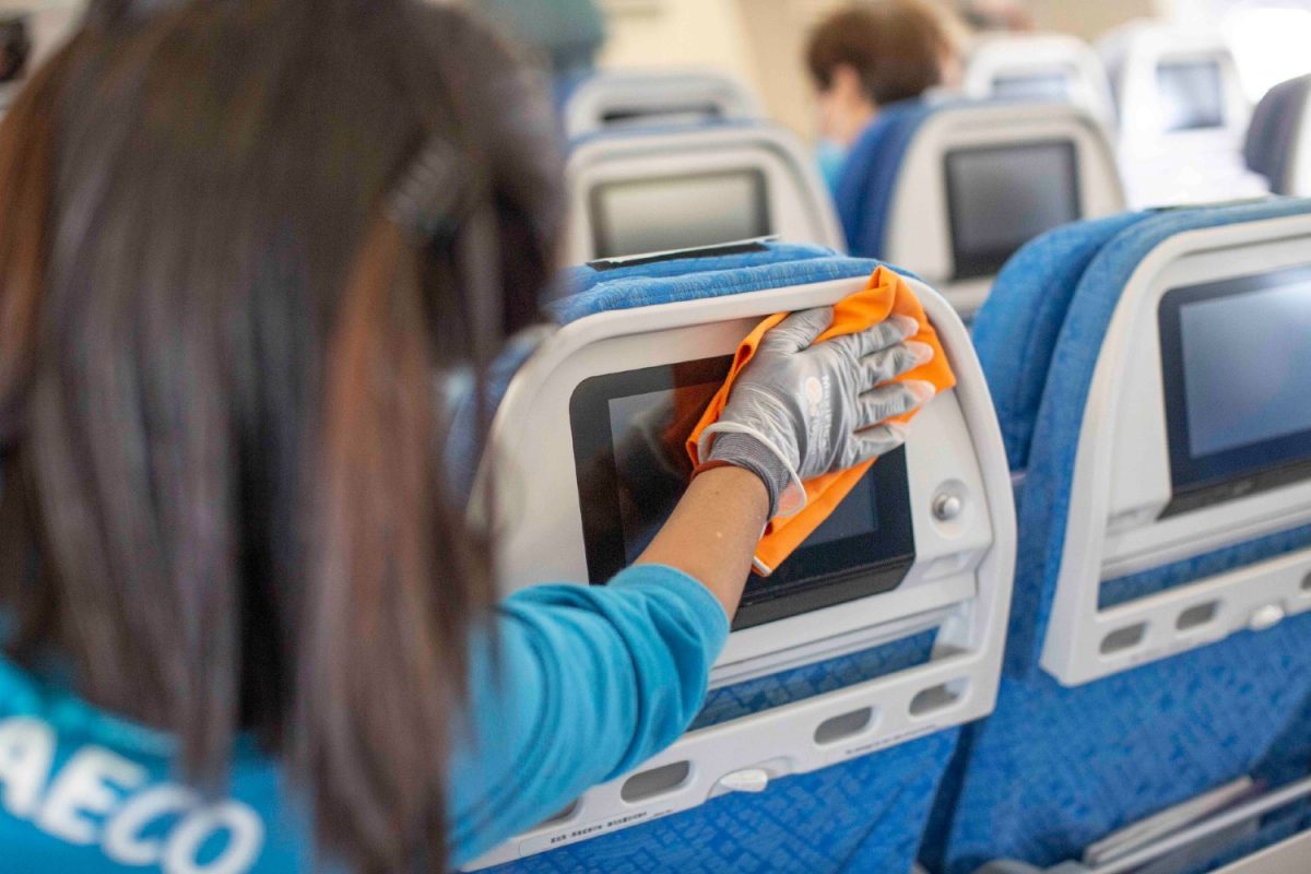 Alcune delle minuziose operazioni di pulizia svolte tra ogni volo Cathay Pacific.