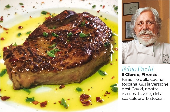A Firenze, città turistica, Fabio Picchi, cuoco e poeta, mattatore di realtà multiple, riaprendo il Cibreo marcia al 30 per cento. Al tavolo tutte coppie, «sicché ho trasformato la mia braciola da un chilo nella braciolina della mi’ nonna, alta un centimetro e mezzo con olio, burro, limone e erbette. E ho messo in carta l’insalata russa-fiorentina, che non avevamo mai tempo di fare, con le barbe rosse, i pisellini, i capperini sottaceto».
