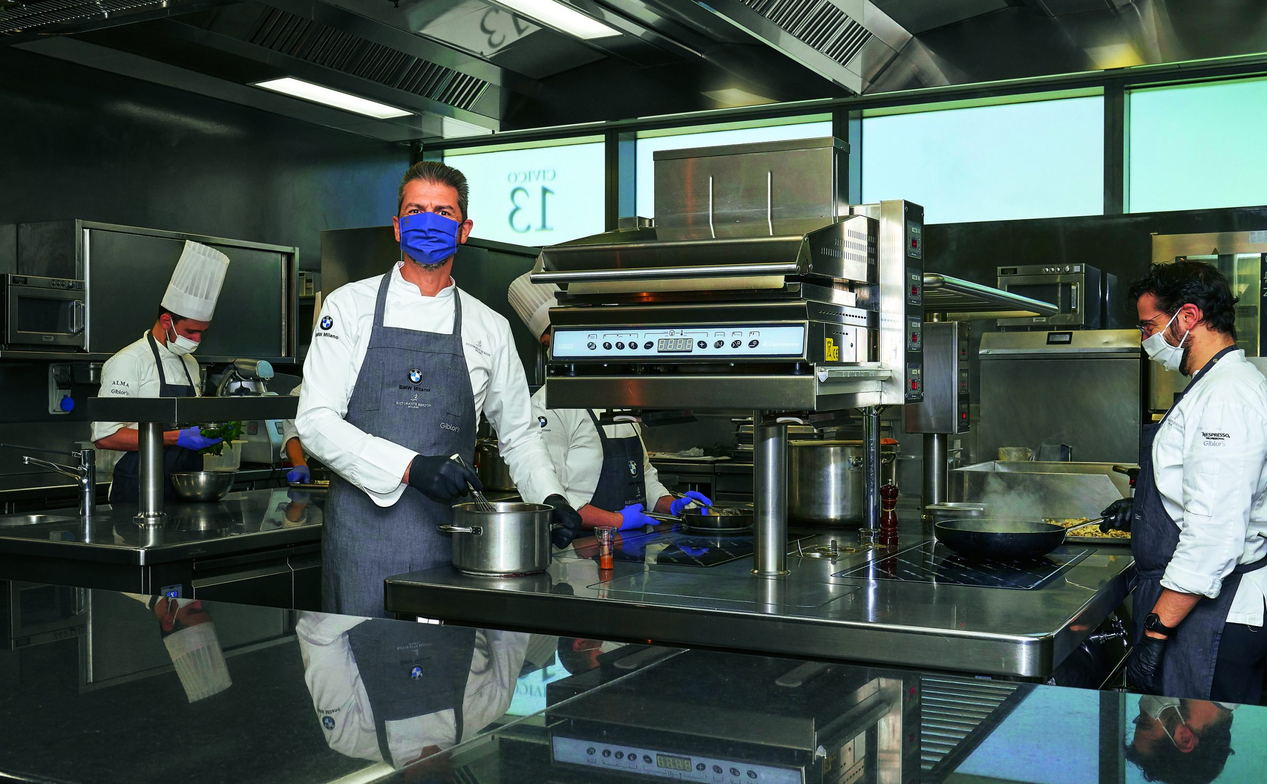 La pensa allo stesso modo Andrea Berton – che celebra la riapertura con un patriottico Pomodoro pelato con basilico (ma è un San Marzano svuotato, la polpa in crema, appoggiato su una «terra» di crumble e spuma di pomodori verdi) – il quale pur avendo dimezzato i coperti e ridotto il personale in cucina ha mantenuto invariato il numero degli addetti alla sala, cui spetta il compito di far sentire sicuri e coccolati gli ospiti guidandoli attraverso tre menu degustazione e il Menu Voucher (mille quelli venduti) per due persone al costo di una, lanciato durante la chiusura.