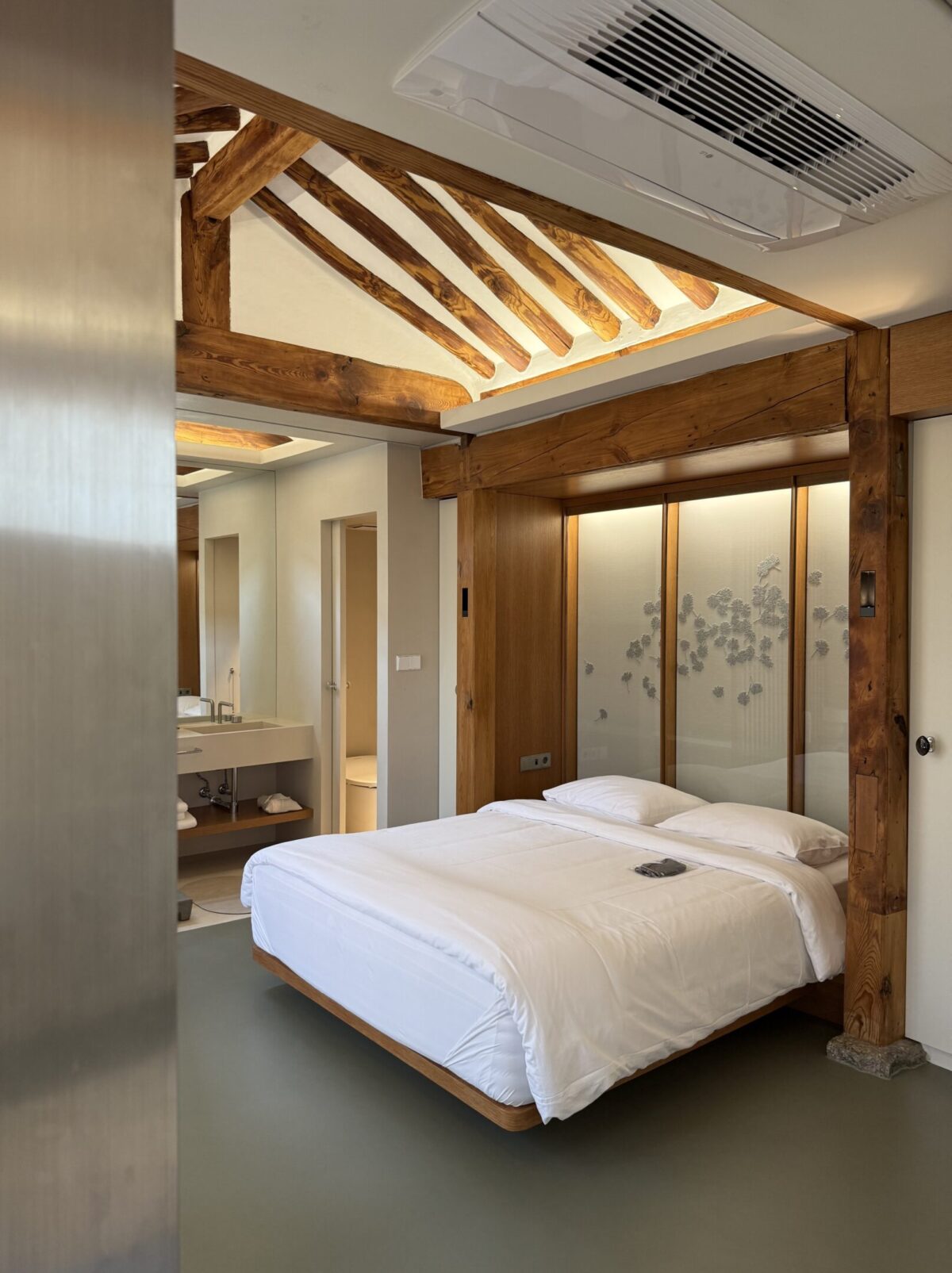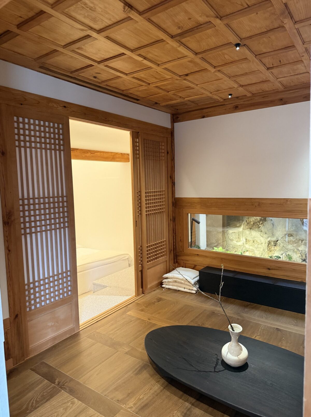 È un hanok progettato per essere abitato da dentro, ma anche per essere osservato come un’opera viva. Si ha la sensazione di muoversi in uno spazio che risponde al proprio passo. Double Jae non vuole stupire: vuole lasciare un’impronta. E ci riesce.