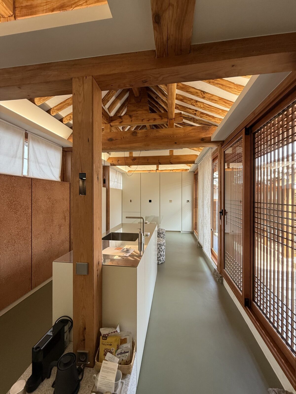 L’hanok è anche un’educazione al tempo. Un tempo che non obbedisce al calendario né all’agenda, ma alla luce e al silenzio. Si impara a osservare, a lasciar correre il pensiero. Ogni apertura, ogni soglia, ogni intarsio ha una sua funzione rituale. È un’abitazione che insegna a stare. Dormirci significa concedersi un ritmo diverso, fatto di pause, gesti e presenza.