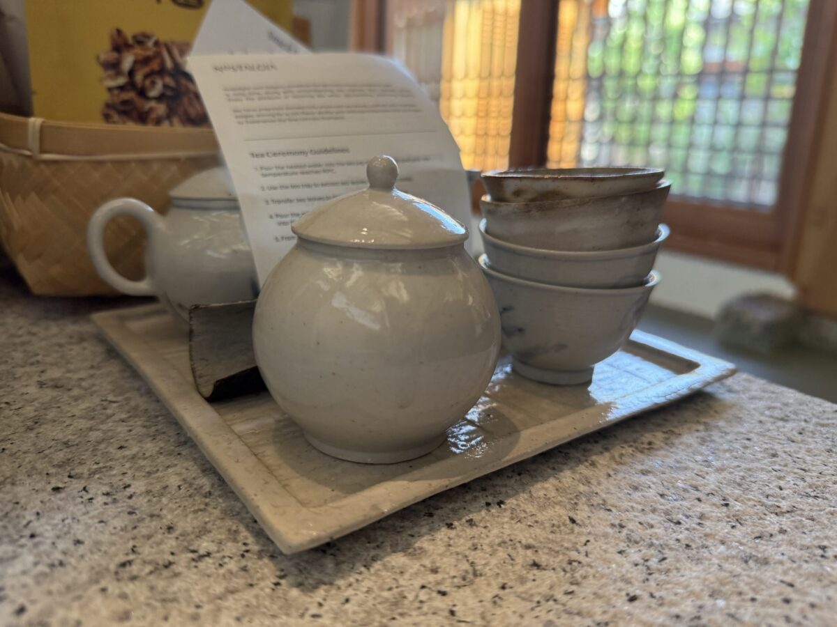 Entrare in Slow Jae è come attraversare una soglia mentale, oltre che fisica. Si viene accolti da un cortile interno che funziona come cuore pulsante della casa, intorno al quale si sviluppano gli spazi abitativi. Una piccola sala da tè introduce a una biblioteca sensoriale – curata, selettiva, pensata non per stupire ma per suggerire – e a un laboratorio di ceramica immerso in un padiglione vetrato, dove è possibile modellare l’argilla sotto la guida silenziosa di un maestro. L’esperienza, più che manuale, è meditativa: lenti gesti antichi che si intrecciano alla ritualità del respiro.