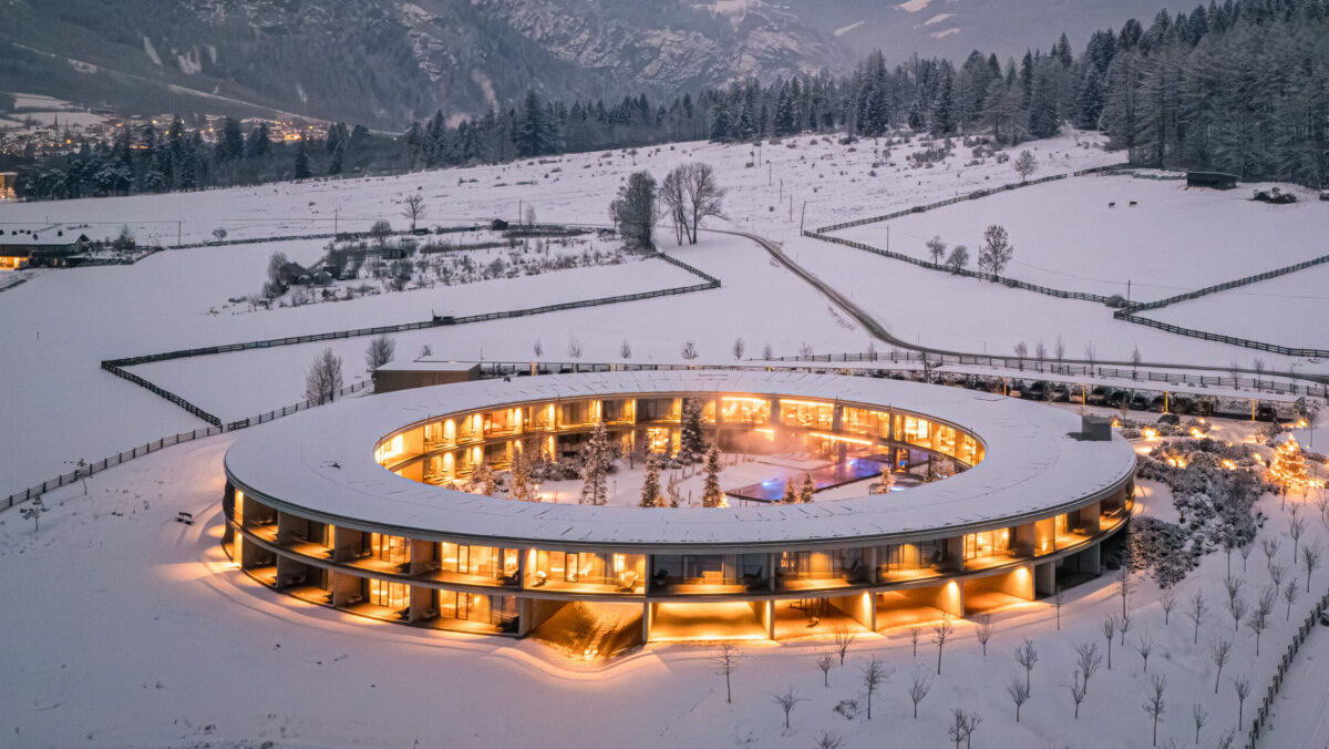 Olm Hotel (Via Unterwalburgen, 21, 39032 Campo Tures BZ. Tel.: 0474 430900 – www.olm.it) – Totalmente diverso, ma anch’esso magico, è l’Hotel Olm, nel cuore dell’ampia Valle Aurina, circondata dalle alte montagne boscose del Sud Tirolo. Una casa circolare, che non è un hotel. Un apart-hotel che però è come casa. Avveniristico e totalmente autosufficiente a livello energetico, OLM Nature Escape abbatte con la sua originalissima bioarchitettura le barriere tra viaggiatori e struttura, creando uno spazio dove le regole sono quasi assenti. “Il regalo è la libertà di scegliere”, recita il manifesto di OLM. Forse il vero lusso sta nell’assenza. Assenza di rumore. Assenza di obblighi. Assenza di giudizio. In questa struttura circolare che sembra sospesa tra passato e futuro, come suggerisce il nome stesso (“Olm in dialetto altoatesino significa sia “malga” che “continuità”), i visitatori scoprono che la vera emancipazione sta nel potersi spogliare non solo degli abiti nella sauna privata, ma anche delle convenzioni sociali che appesantiscono la quotidianità. Qui, nel cuore del Parco Naturale Vedrette di Ries-Aurina, essere liberi è un’esperienza tangibile, tanto nel poter praticare trekking, nordic walking, arrampicata, rafting, quanto nel poter scegliere di non fare assolutamente nulla, cullati dall’abbraccio circolare di OLM, tra la immensa, calda piscina, e il circostante lago dall’acqua di sorgente.