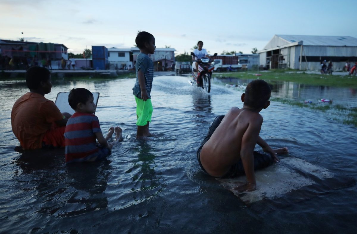 Di tanto in tanto l’acqua marina li raggiunge anche lì, penetrando il terreno e costringendoli a trascorrere intere giornate con l’acqua al ginocchio. Non ha dato tregua nemmeno ai defunti, spazzando via interi cimiteri e costringendo i vivi a costruire le loro tombe accanto alle abitazioni. Sono le stesse infiltrazioni salate che hanno fatto crollare la produzione di noci di cocco e dei tuberi di taro gigante e reso l’acqua dolce un bene raro.